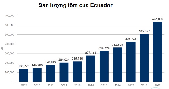 4 năm trước đây, sản lượng tôm trung bình của Ecuador đạt 1 tấn/ha/năm nhưng nhờ đầu tư kỹ thuật, tỷ lệ này đã tăng lên 2-2,5 tấn/năm.