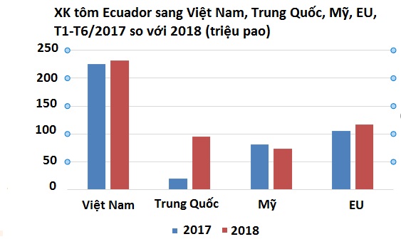 XK tôm Ecuador sang Việt Nam tăng 3% về khối lượng tuy nhiên giảm 1% về giá trị so với cùng kỳ năm 2017. Ecuador XK 201.562 tấn tôm sang Việt Nam năm 2017, tăng 34%. Giá trị XK đạt 1,29 tỷ USD, tăng 32%.