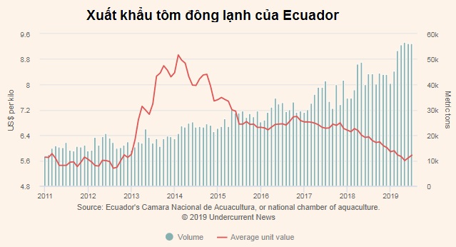 XK tôm Ecuador sang Trung Quốc chiếm 63% tổng XK tôm của Ecuador. Ecuador XK 56.169 tấn tôm trong tháng 7/2019.