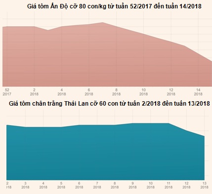 (vasep.com.vn) Giá tôm Thái Lan và Ấn Độ đều giảm mạnh trong tuần cuối cùng của tháng 3/2018.