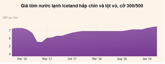Tại Iceland, giá tôm cỡ 300/500 ổn định với giá 6,8 bảng/kg do nguồn cung thấp; cỡ 100/200 và 150/250 giảm nhẹ do nguồn cung tốt hơn.