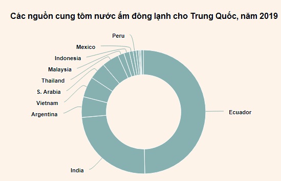 Ecuador và Ấn Độ là các nguồn cung cấp tôm nước ấm lớn nhất cho Trung Quốc, chiến gần ¾ tổng NK mặt hàng tôm này của Trung Quốc năm 2019.