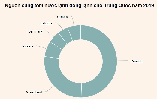 Năm 2019, nguồn cung tôm nước lạnh lớn nhất của Trung Quốc là Canada (27.529 tấn), tiếp đó Greenland (15.400 tấn), Nga (3.877 tấn) và Đan Mạch (3.007 tấn).