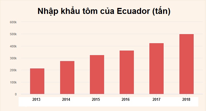 Năm 2018, Ecuador XK 505.857 tấn tôm, trị giá 3,2 tỷ USD, tăng 19% về khối lượng và 12% về giá trị so với năm 2017. Đây là năm đầu tiên, XK tôm của Ecuador vượt qua mốc 500.000 tấn. Đây là nỗ lực lớn của các DN XK và cả ngành tôm Ecuador. Năm 2018, Ecuador tăng mạnh XK sang Trung Quốc và EU trong đó đáng chú ý, XK sang Trung Quốc tăng ở mức 3 con số cả về khối lượng và giá trị.