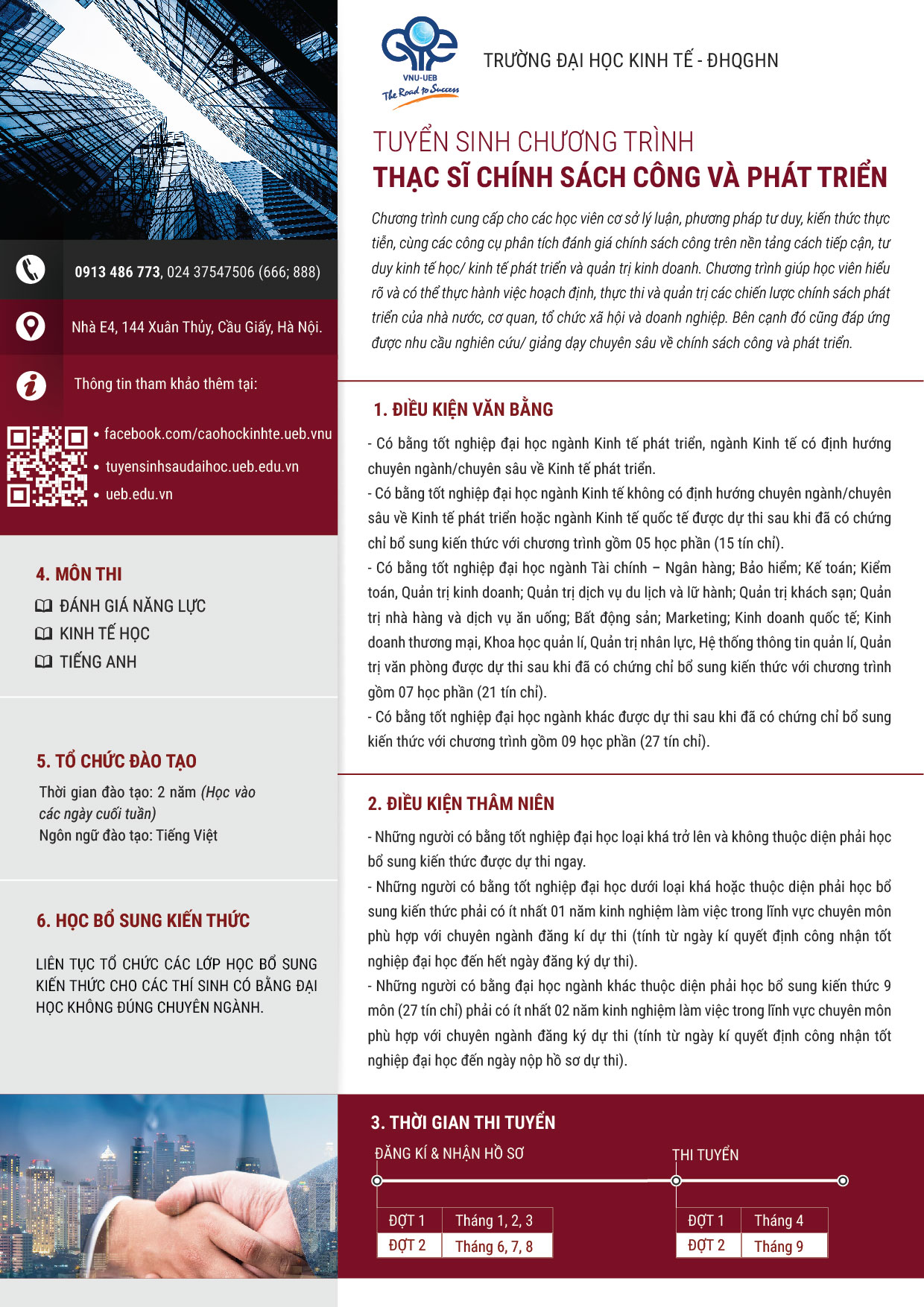 Tuyển sinh chương trình chương trình thạc sĩ Chính sách công và Phát triển năm 2019