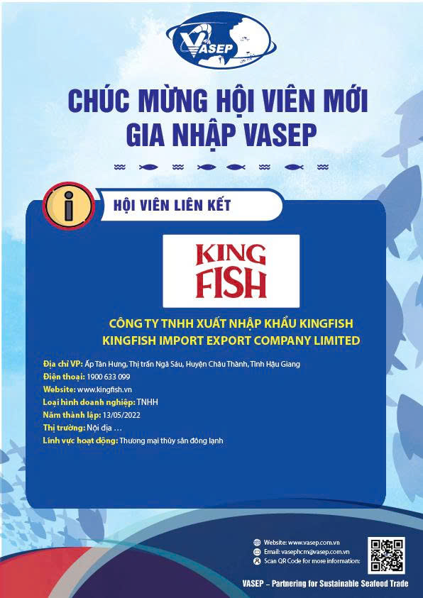 (vasep.com.vn) Trong tuần qua, đã có thêm 01 Hội viên gia nhập VASEP. Chúc Quý doanh nghiệp ngày càng phát triển, cùng VASEP gắn kết bền chặt, nâng cao chất lượng và thương hiệu ngành thủy sản Việt Nam vươn xa toàn cầu!