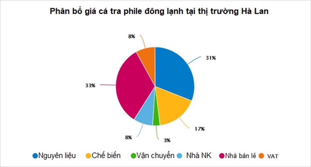 Trong bảng phân tích nêu trên, giá bán lẻ cho 1 kg cá tra philê đông lạnh là €5,38, bao gồm 9% VAT. Không bao gồm VAT, giá bán lẻ sẽ là €4,94.