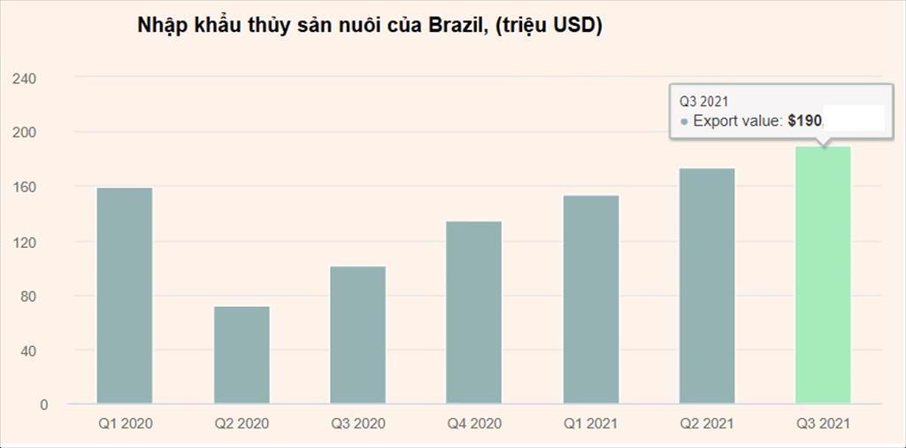 Nhập khẩu giảm trong quý II/2020 có thể do ảnh hưởng của đại dịch, sau đó nhập khẩu các sản phẩm nuôi trồng thủy sản của Brazil đã tăng đều đặn.
