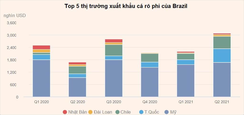 Mỹ là điểm đến chính của cá rô phi Brazil, nhập khẩu 3,2 triệu USD trong nửa đầu năm 2021, chiếm 53% tổng lượng cá rô phi xuất khẩu của Brazil. Ngoài ra, Trung Quốc và Chile, đứng thứ hai và thứ ba, nhập khẩu khoảng 910.000 USD và 905.000 USD cá rô phi trong cùng thời kỳ.
