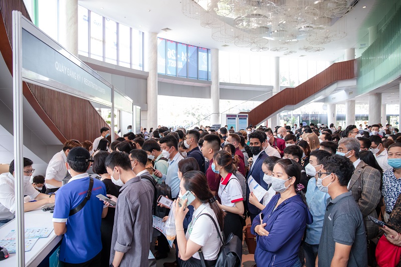 (Xếp hàng đăng ký vào tham quan Hội chợ)